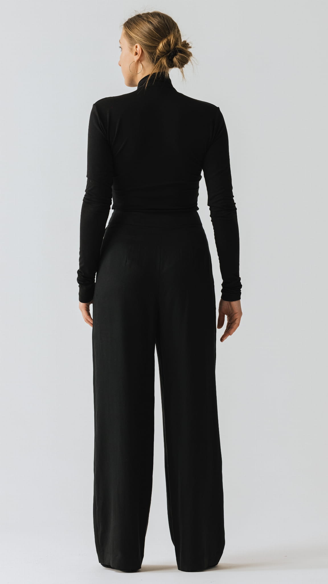 Góra bluzki wykończona jest długą szarfą, którą można wiązać na wiele sposobów, a sama bluzka jest dwustronna, tworząc naprawdę wielofunkcyjny model, sprawdzający się na wiele okazji.