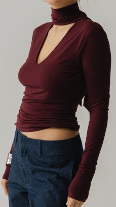 Bluzka N°59 jest w dwóch wariantach kolorystycznych, bordo oraz czerń, ale różni je skład.