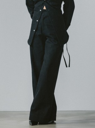 Proste, długie nogawki wykończone są szerokim mankietem, który można odwinąć, by nadać stylizacji lekkości i dodać kilka optycznych centymetrów. Starannie dopracowany krój podkreśla sylwetkę, a praktyczne szlufki w pasie i boczne kieszenie czynią ten model równie funkcjonalnym, co stylowym natomiast w połączeniu z koszulą N°75 uszytą z tego samego denimu tworzą set idealny.