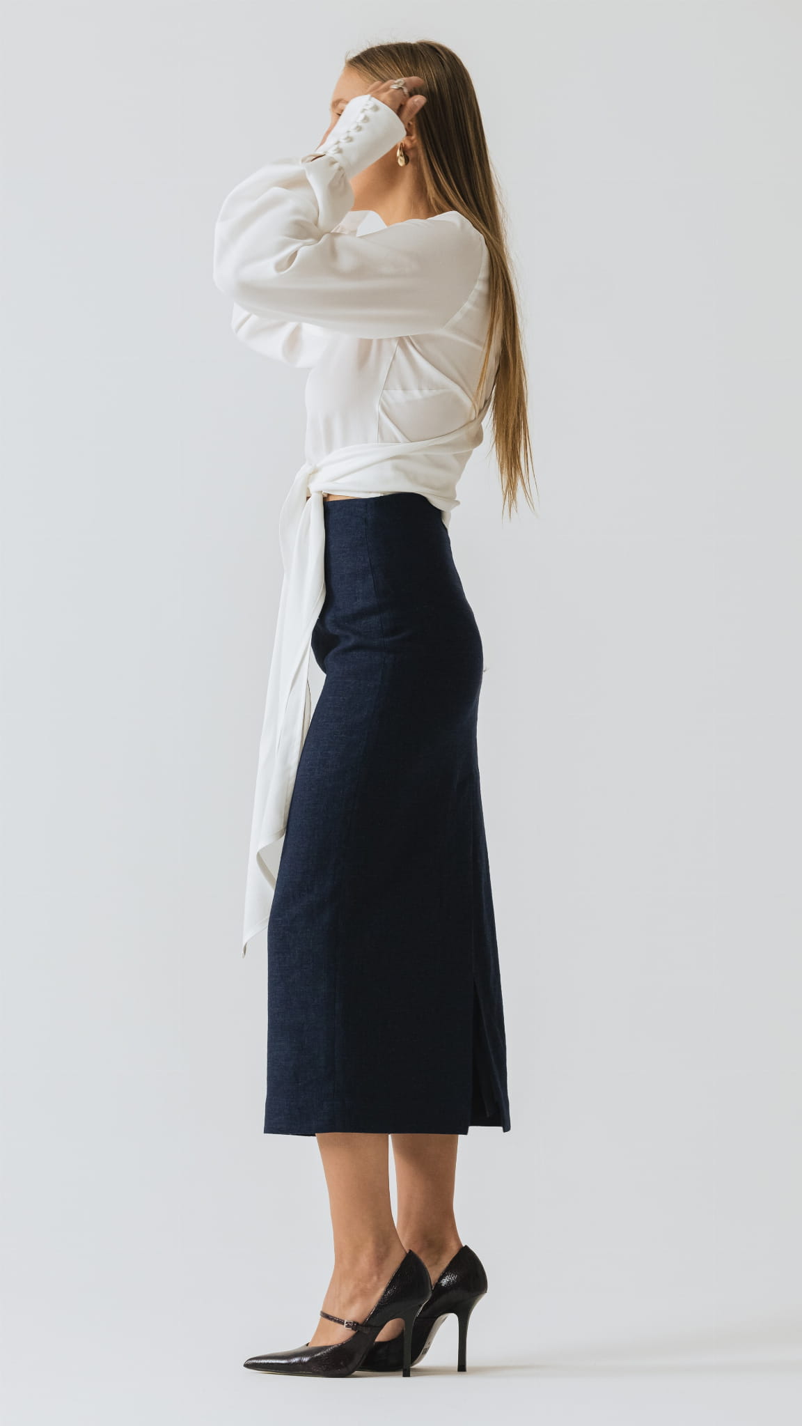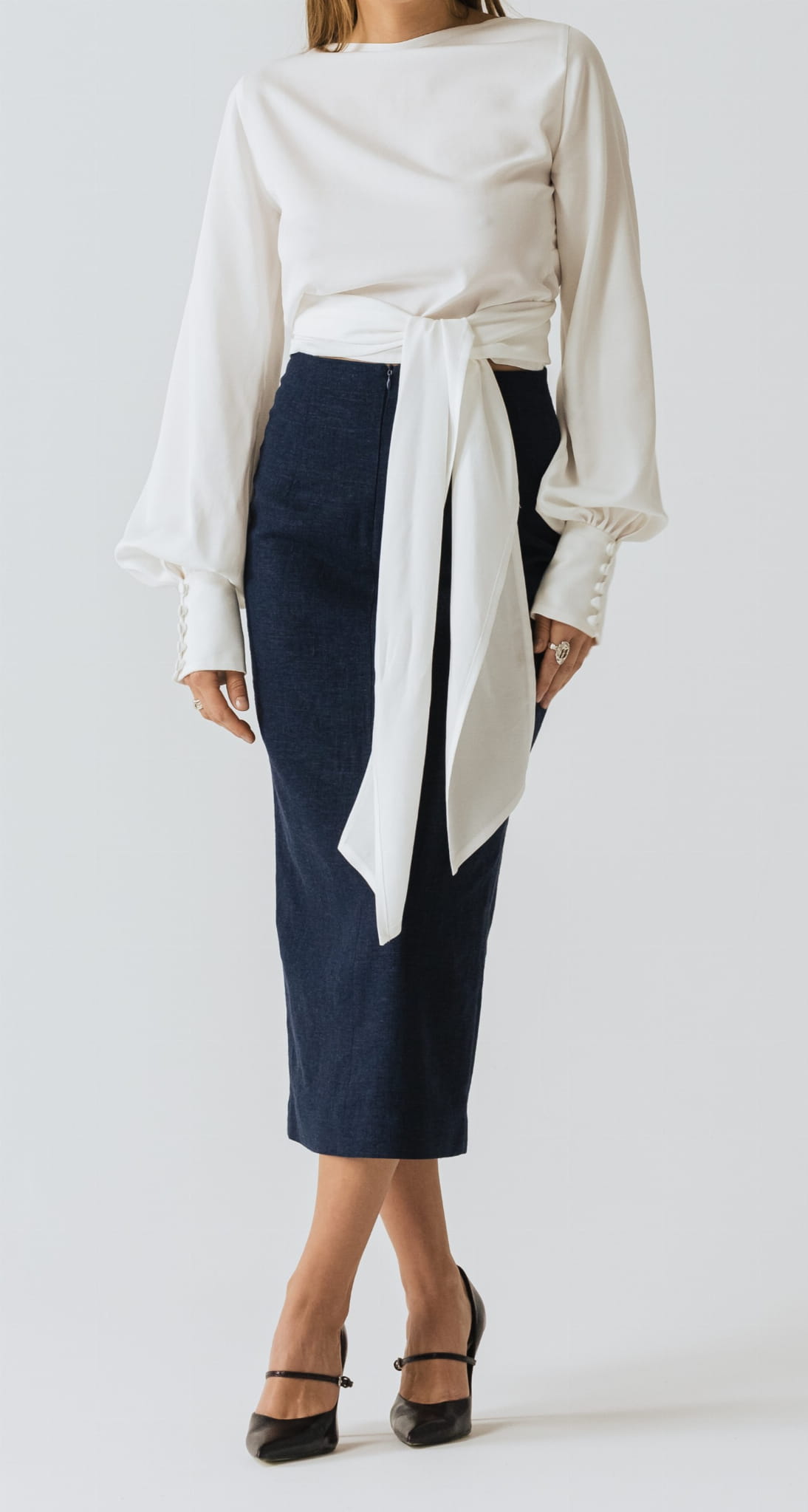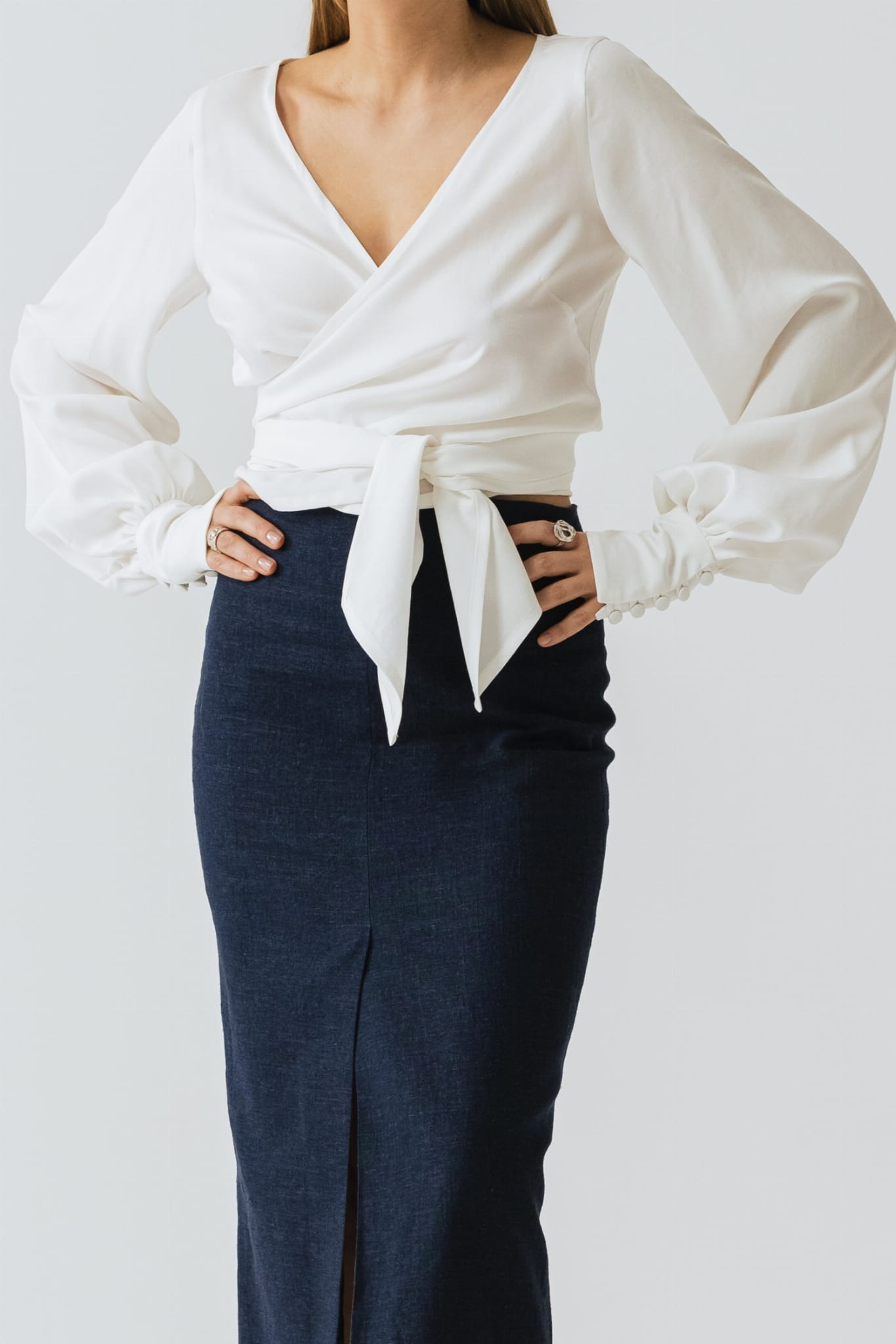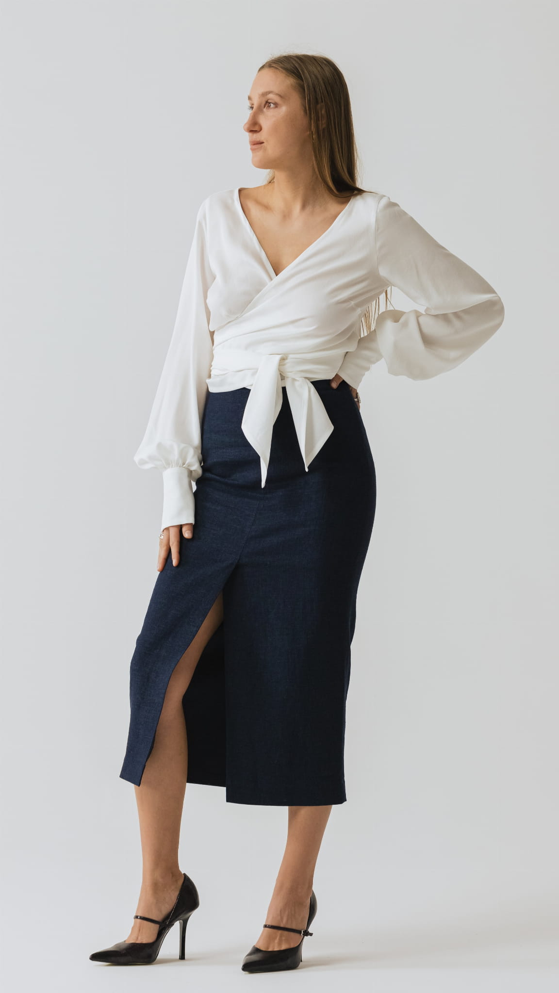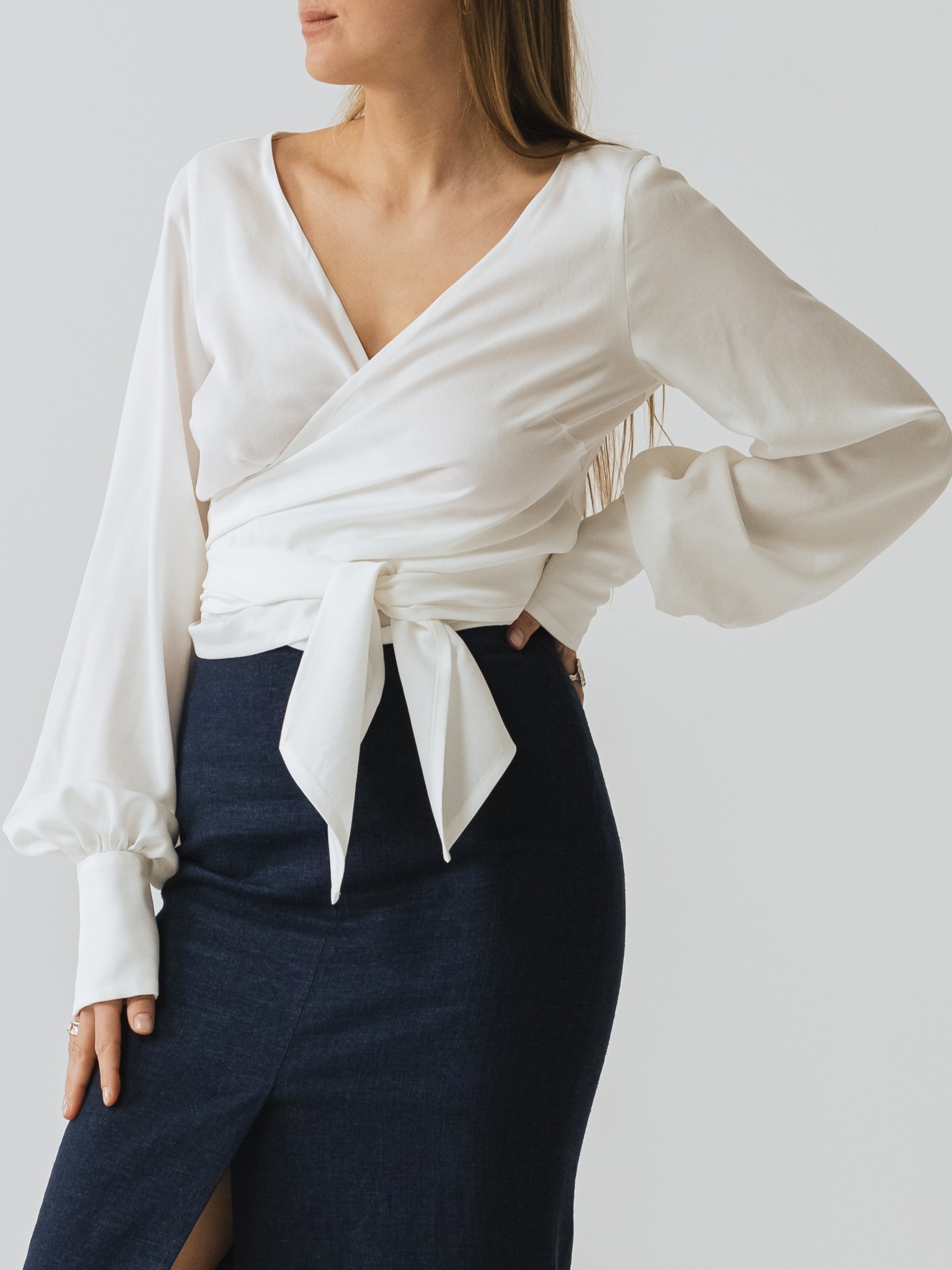 Dzięki długiemu wiązaniu, koszulę można zawiązać na wiele sposobów, natomiast kopertowy krój umożliwia dopasowanie wielkość dekoltu do swoich potrzeb. Koszulę N°10 można nosić również tył na przód, tworząc dekolt na plecach.